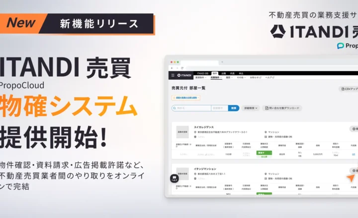 イタンジ、「ITANDI 売買 PropoCloud」 物確システムを提供開始<ニュース概要>売主・買主仲介間のやり取りをオンライン完結へ…