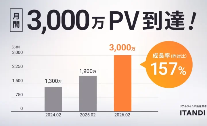 「ITANDI BB」、月間約3,000万PVに到達!昨対比157%の成長、リアルタイムな情報精査が仲介現場のスタンダードに<ニュース概要>イ…