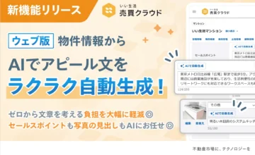 「いい生活売買クラウド」コメントAI自動生成機能をリリース<ニュース概要>株式会社いい生活は、「いい生活売買クラウド」において、コメントAI自…