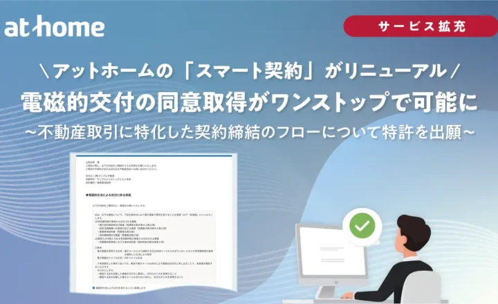 アットホームの「スマート契約」がリニューアル、電磁的交付の同意取得がワンストップで可能に~不動産取引に特化した契約締結のフローについて特許を出願~<ニ…