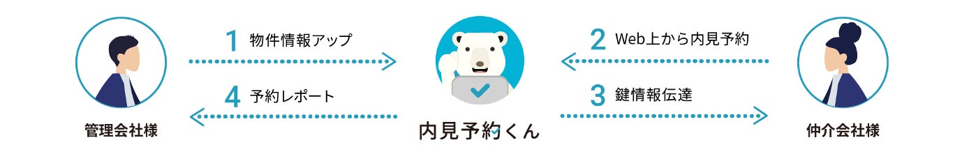 内見予約の受付作業や鍵情報の照会作業を自動化することで、24時間365日いつでも内見予約をすることができる、賃貸住宅の内見予約WEB受付システムです。内見予約の自動化により、賃貸不動産管理会社は業務を効率化し、予約重複等のトラブルを防ぎます。また、宅建業を許可されていない不正業者の自動チェック機能もあり、犯罪の抑制にも貢献します。入居希望者にとっては素早く効率的に希望の部屋を内見できるようになり、利便性が向上します。