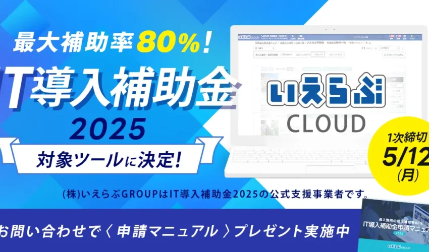 不動産業務支援SaaS「いえらぶCLOUD」が「IT導入補助金2025」の対象ツールに認定!最大補助率80%で導入が可能に