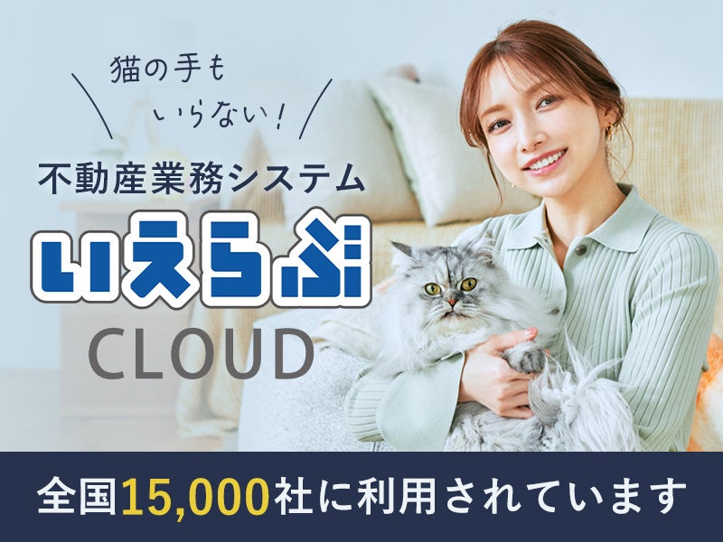 「いえらぶCLOUD」は、賃貸・売買・管理すべてに対応したオールインワンの不動産業務支援システムです。毎週行われるアップデートの速さや、幅広い業務を一気通貫でオンライン化できる点が支持されており、全国の不動産会社15,000社以上で導入されています。