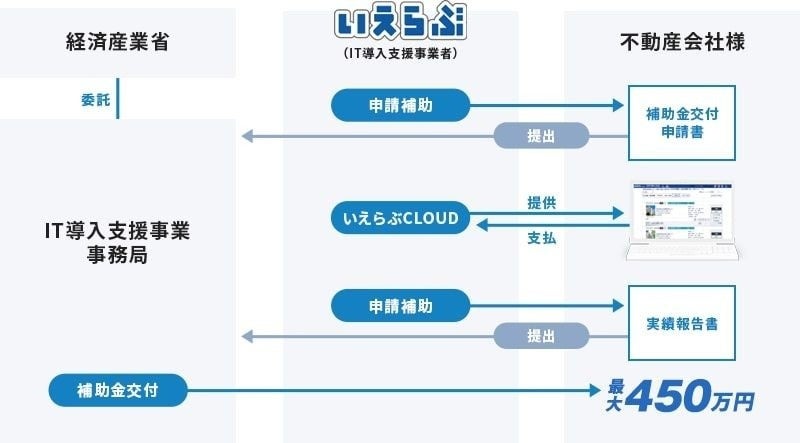 この認定により、一定の条件を満たす不動産事業者は「いえらぶCLOUD」を導入する際、最大で450万円の補助を受け取ることが可能になります。