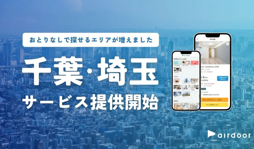 「おとりなし賃貸」のエアドア、千葉・埼玉エリアにサービス提供開始!〜東京・神奈川に続き、首都圏4都県へ拡大〜