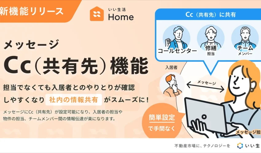 株式会社いい生活は、同社が提供する入居者向けアプリ「いい生活Home」において、新たに「Cc機能」をリリースしたことを発表しました。この機能の実装により、入居者対応における情報共有の効率化と、共有漏れによるトラブルの防止を図るとともに、入居者満足度の向上が期待されています。