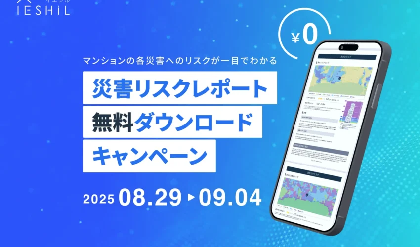 株式会社リブセンスが運営する不動産情報サイト「IESHIL(イエシル)」は、2025年9月1日の「防災の日」にあわせ、2025年8月29日(金)から9月4日(木)の期間限定で、通常770円(税込)で提供している「災害リスクレポート」を無料提供すると発表しました。対象エリアは一都三県のマンション周辺となります。