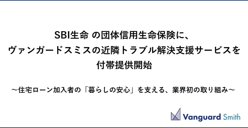 SBI生命の団体信用生命保険に、ヴァンガードスミスの近隣トラブル解決支援サービスを付帯提供開始!住宅ローン加入者の「暮らしの安心」を支える、業界初の取り組み