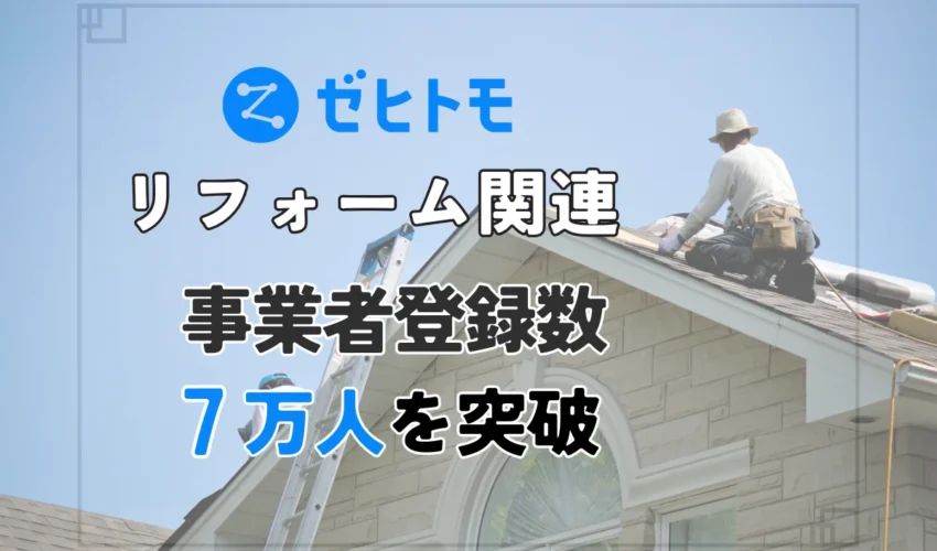 株式会社Zehitomoが運営する、くらしのマッチングサービス「ゼヒトモ」は、2025年9月、リフォーム関連サービスにおける登録プロ(事業者)が累計7万人を突破したことを発表しました。