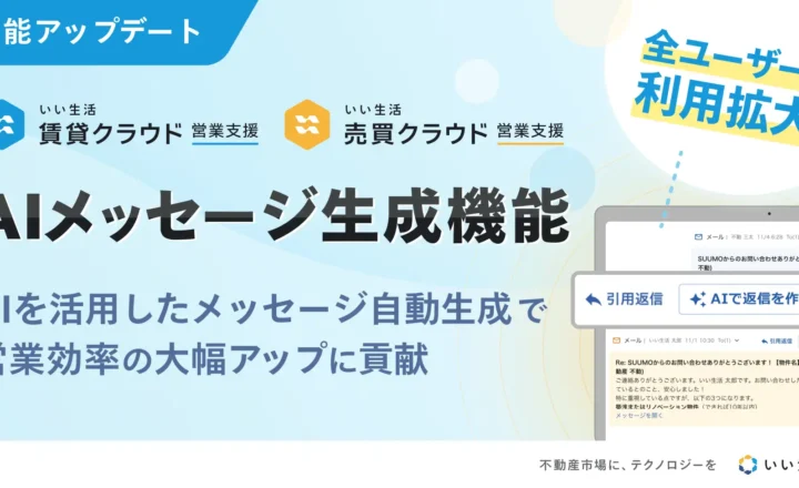 「いい生活」は、不動産業務のデジタル化を推進するクラウドサービスを提供しており、今回の機能追加により、販売支援の効率化や現場担当者の業務負担軽減がさらに進むと見られます。
