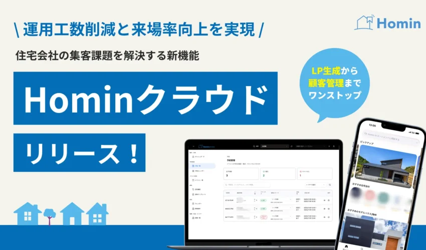 住宅会社の集客課題を解決する新機能「Hominクラウド」リリース!Hominに「Hominクラウド」を搭載ーLP生成から顧客管理までをワンストップ化で運用工数削減と来場率向上を実現