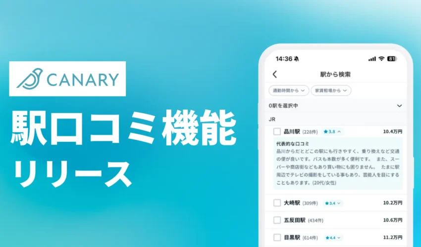 株式会社カナリーは2026年1月、不動産情報マーケットプレイス「カナリー(CANARY)」において、ユーザーが駅名を検索した際に、その駅に関する口コミを確認できる「駅口コミ機能」をリリースしたことを発表しました。
