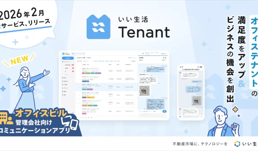 株式会社いい生活は、管理会社とオフィステナント間のコミュニケーションをデジタルで一元化する新アプリ「いい生活Tenant」をリリースしたと発表しました。