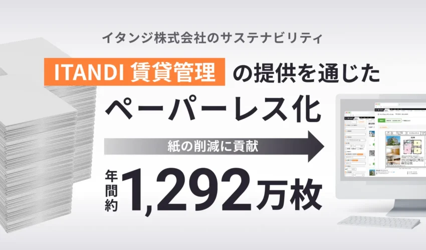 イタンジ、「ITANDI 賃貸管理」の提供を通じて年間約1,292万枚の紙の削減を達成