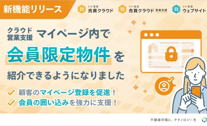 「いい生活売買クラウドOne」「いい生活売買クラウド 営業支援」「いい生活ウェブサイト」が連携する会員限定物件表示機能をリリース<ニュース概要>…