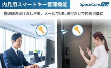 賃貸内覧時の鍵の課題を解決する新機能、「内覧用スマートキー管理機能」をSpaceCoreProに搭載!物理鍵の受け渡し不要、URL送付だけで内覧可能に。空室期…